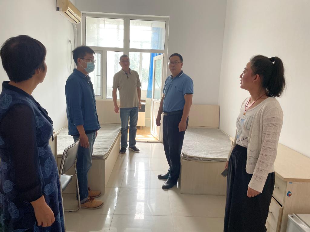 耿辉建首先向公寓楼楼长了解公寓楼的整体情况,对楼管老师们长期以来的付出表示衷心的感谢。随后,他深入宿舍内部,查看公寓设施、配备及用电安全情况。他强调,要统筹好公寓楼的内部资源,对需要修缮的设施要及时做好记录并进行报备,做好新生安置工作,确保留学生住宿安全。