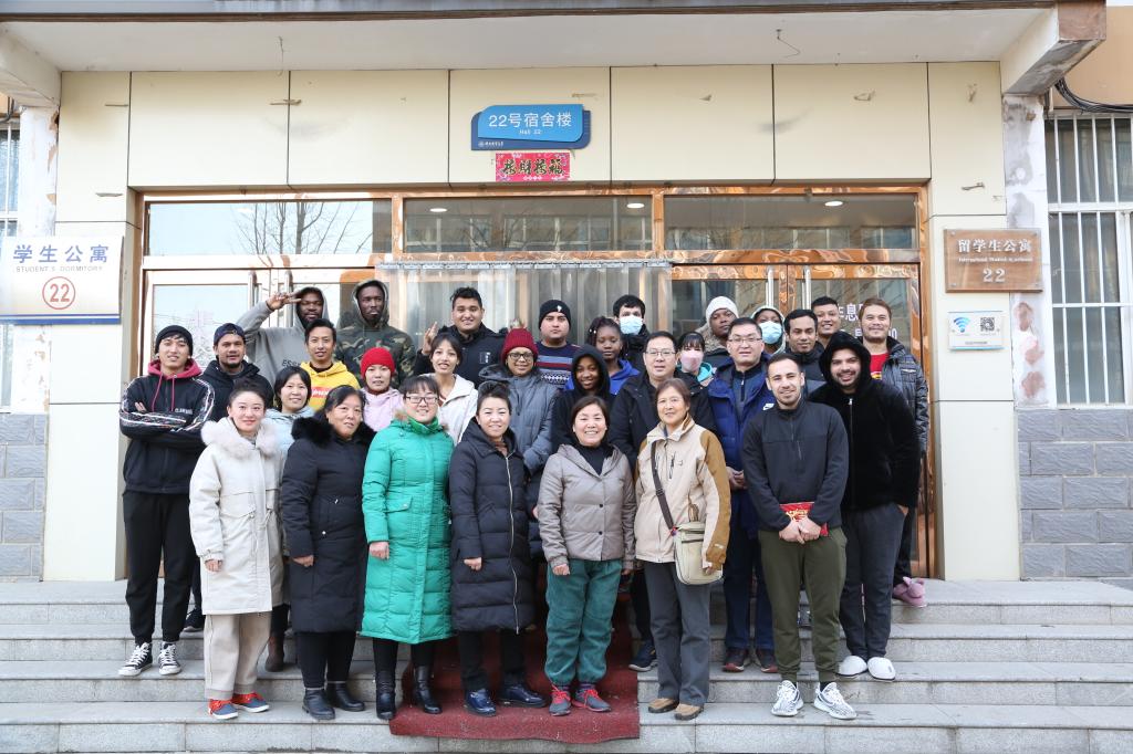 院领导耿辉建、樊国平,留学生辅导员,22号留学生公寓全体管理员以及21名在校留学生参会。