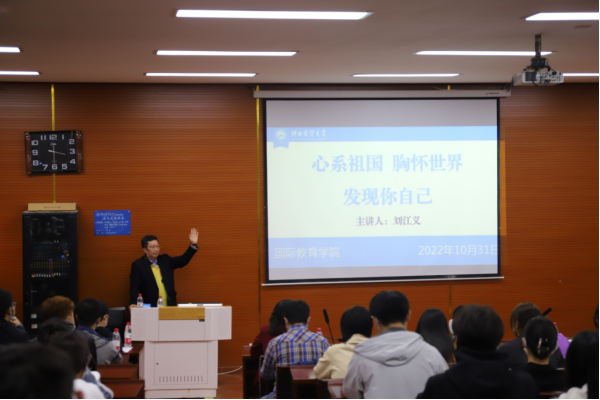 在将近2个小时的讲座中,刘江义结合党的二十大报告主要内容,从理论到实践讲述了作为国际化人才应具备心系祖国的使命感和胸怀世界的大格局。刘江义还着重引导学生拓展国际视野、梳理国际化思维、明确个人发展目标,探寻各领域高端人才国际化发展路径,准确把握发展机会,在人才强国的背景下,提升自身的国际竞争力。他建议同学们积极行动,为海外留学或实践交流做好有意义的准备。