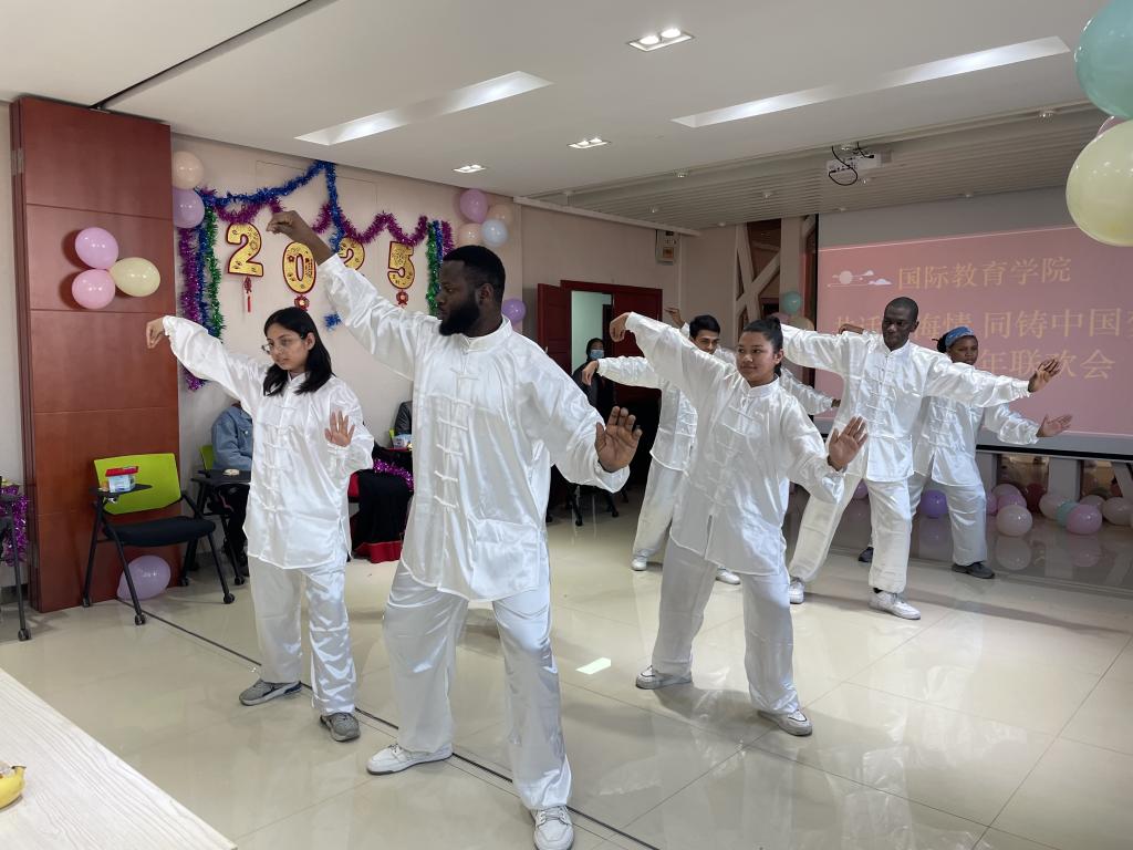 刘晔发表了热情洋溢的致词,为大家送上新年祝福和问候,她希望留学生在新的一年专注学习,加强对中国的了解与认识,让学院成为实现梦想的起点,为自己的留学生涯留下美好而难忘的回忆。留学生们用精彩纷呈的表演点燃了全场氛围。来自萨尔瓦多的STEVEN同学献上吉他弹唱 “Take me home, Country roads” ,赞比亚的MOSES 同学奉上中文歌曲独唱 “在水一方”,一学年语言生共同表演合唱“我爱你中国”和太极拳,同学们又唱又跳,会场一片欢声笑语。精彩的节目过后,留学生们兴致勃勃地参加了生动有趣、种类丰富的游戏活动。学院领导还为2024级一学期汉语研修生颁发了结业证书和纪念品。