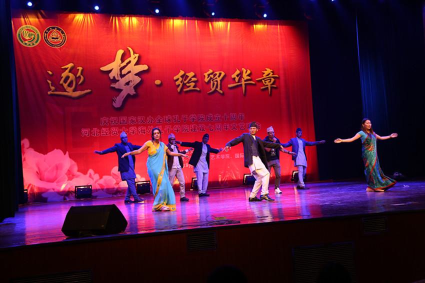 来自尼泊尔加德满都大学孔子学院和赞比亚大 学孔子学院的留学生为现场观众带来了多个节目,以此表达他们对孔子学院的培养之情对中国的热爱。