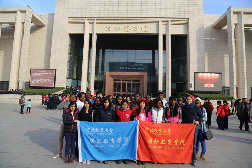 河北博物院共有“北朝壁画”、“曲阳石雕”、“名窑名瓷”、“石器时代的河北”、“河北商代文明”、“战国雄风--古中山国”、“大汉绝唱--满城汉墓”、“慷慨悲歌--燕赵故事”等八大展厅,共陈列超过15万件文物。由金丝编缀玉片而成的“刘胜金缕玉衣”、刻着古老文字的“长信宫灯”、战国时期的“中山王铁足大鼎”等文物引起了留学生们的极大兴趣。留学生们边参观边激动地与同学们分享自己的感受。一件件见证河北文明发展和历史沿革与变迁的珍贵文物,直观地展现了河北悠久的历史文化和东方文明。