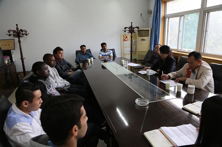 会上,张金哲老师介绍了与会的各位领导和教师,并向留学生介绍了此次会议的目的。随后,国际贸易学全英文授课导师组组长、商学院副院长焦知岳教授详细介绍了导师组成员的个人情况、研究方向和科研情况。留学生也介绍了个人的学习背景等基本情况。最后,根据导师本人科研情况和学生具体情况,经导师组决定,焦知岳宣布了各位留学生的导师名单。