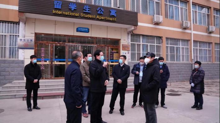 刘建平向检查组一行汇报了学校疫情防控总体情况以及”八有”落实情况。随后,检查组在相关人员陪同下,到学校门卫、留学生公寓等地进行了实地检查。