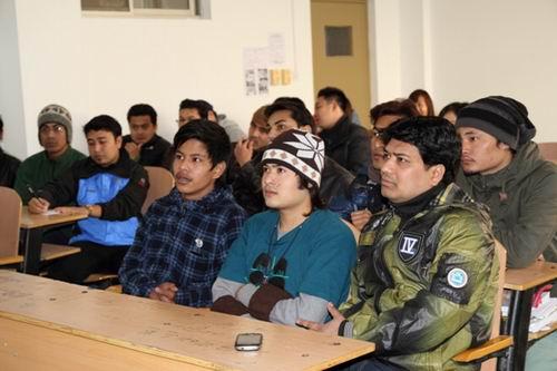 成健向留学生们通报了新情况, 欧美av 已获得政府奖学金招生资格,意味着留学生的招生规模将大幅提高。会上还向留学生们介绍了负责学生管理和教学管理的樊国平老师,樊国平表示该院将逐步完善留学生管理和教学体制,如请销假制度和约见制度等。