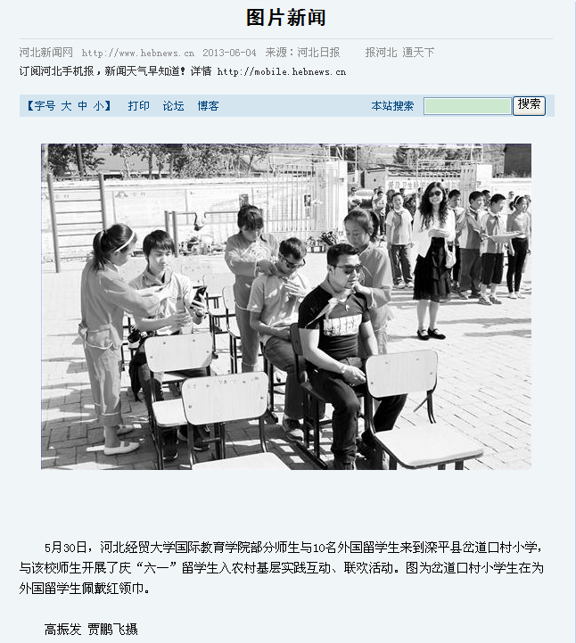 5月30日至31日,欧美av 组织留学生赴承德滦平县举办了2013年“留学生入农村”活动,活动取得了圆满成功。河北日报和河北新闻网跟踪报道了该活动并进行了图文报道。