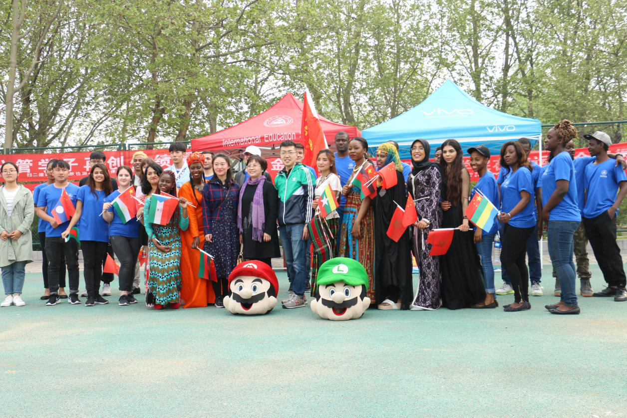 来自美国的李连杰同学和赤道几内亚的詹尼同学身着超级玛丽服装,充分展示了留学生的活泼可爱;各国留学生身着民族服装在主席台前互动,体现了独具特色的文化风采。