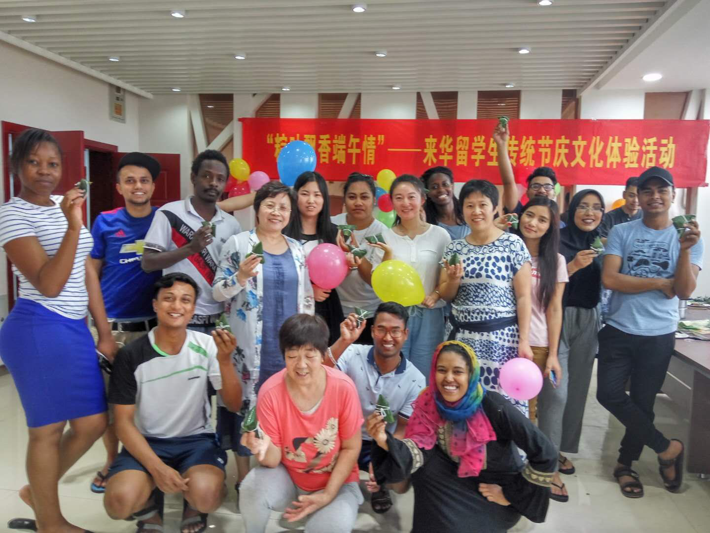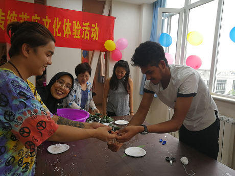 举行“粽”情五洲,“乐”享端午传统节庆文化活动,留学生管理人员和来自不同国家的留学生参加了此次活动并亲身体验,制作粽子。