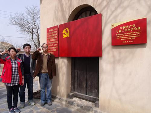 在党的群众路线教育实践活动中,来到这里就是要继承革命传统,牢记党的宗旨,坚定共产主义理想、信念。在七届二中全会旧址旁前全体共产党员举起右手面对党旗庄严宣誓,重温入党誓词。