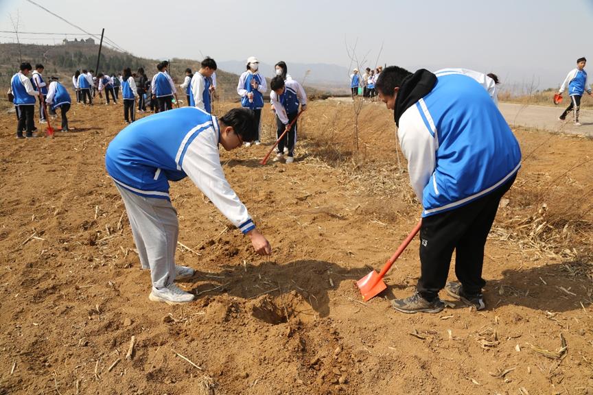 三月天,草长莺飞,一把铲,一株苗,一抷土,种一棵树,植一片林,增加一片绿,造福一方人。为响应习近平总书记“绿水青山就是金山银山”的诚挚号召,推进生态文明建设和生态环境保护进程,深入劳动教育促成长战略,当天下午在石头村山坡开展植树活动。