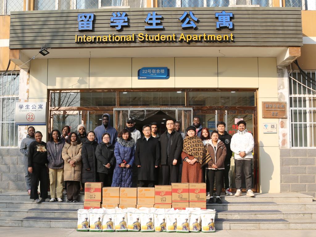王重润深入留学生宿舍,亲切友好地询问留学生的学习、生活情况,勉励大家在校期间要合理安排时间,努力学习专业知识和中国文化,积极讲好中国故事和经贸故事,为赓续中外友谊贡献力量,祝福大家学业有成、春节快乐。