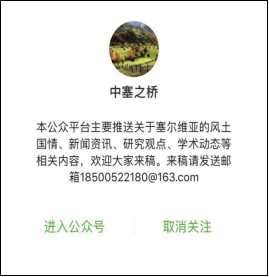 “中塞之桥”微信公众号界面(右一)与二维码(左一)